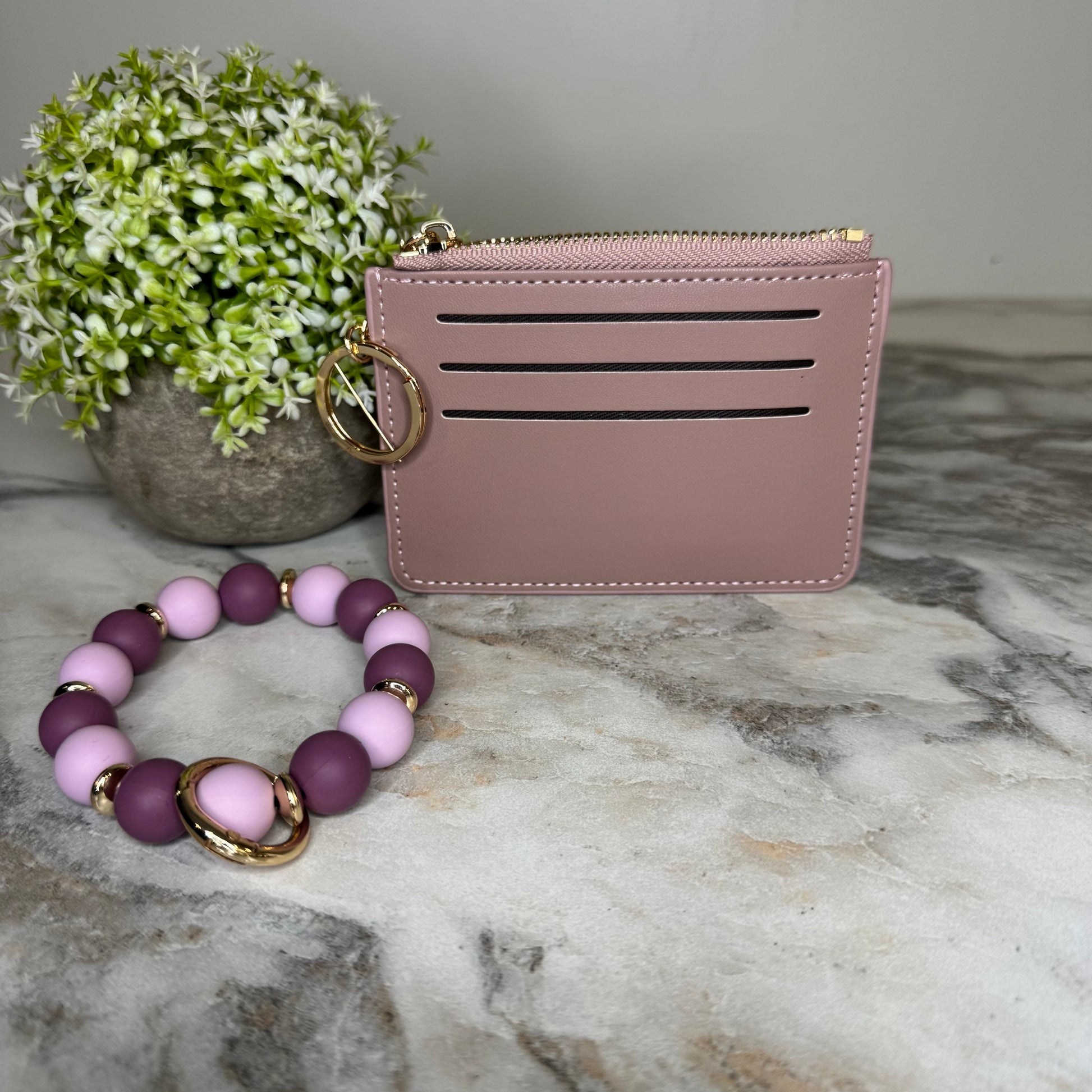 Denim Suede Bracelet Keychain & Card Holder Wallet