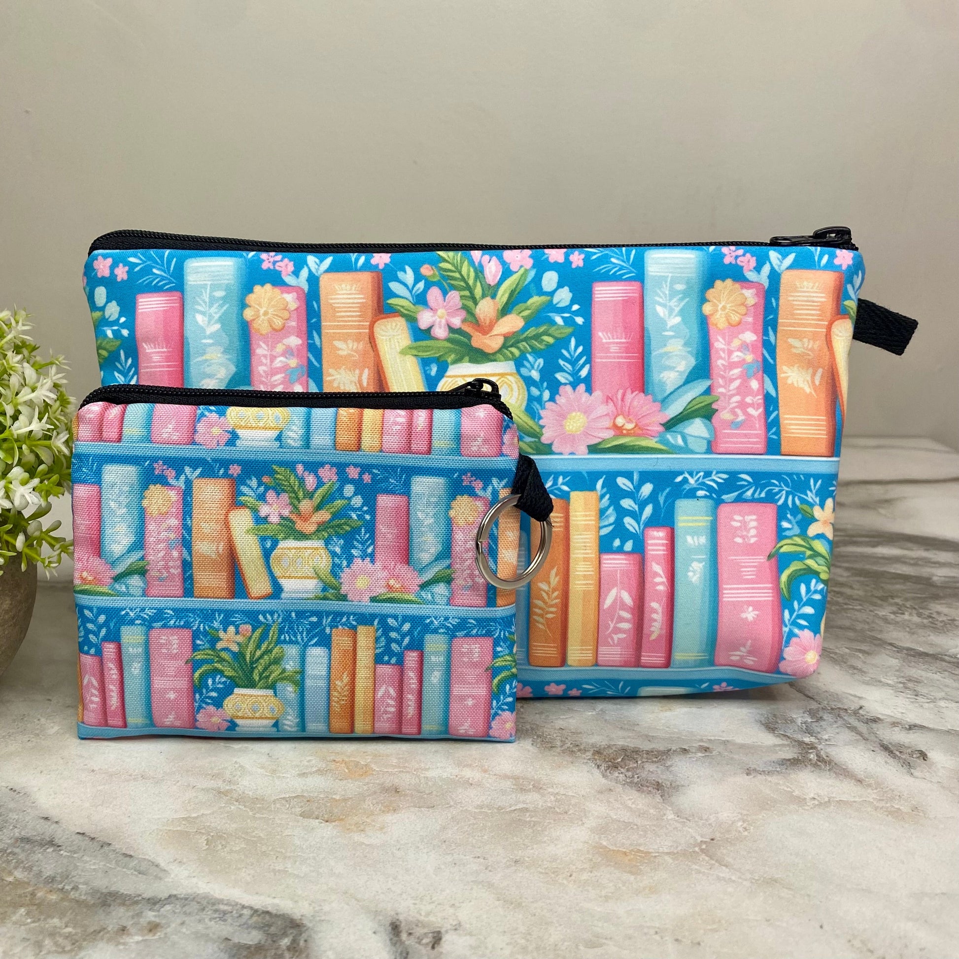 Pouch & Mini Pouch Bundled Set - Book Floral Pastels on Blue