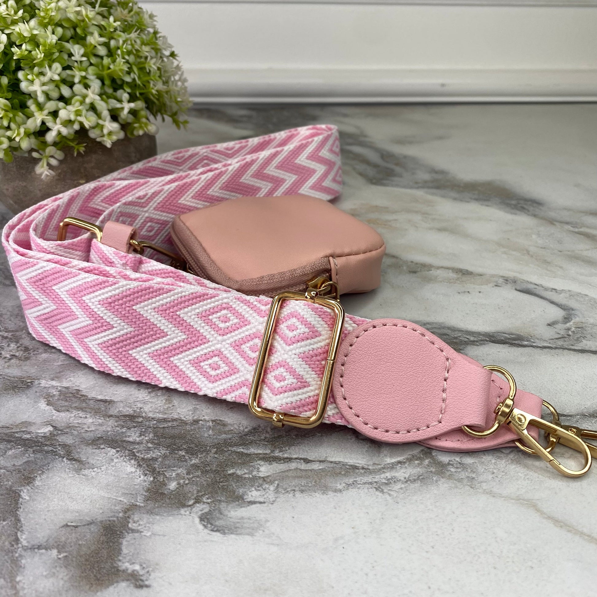 Replacement Strap + Pouch - Pink & White Woven Chevron