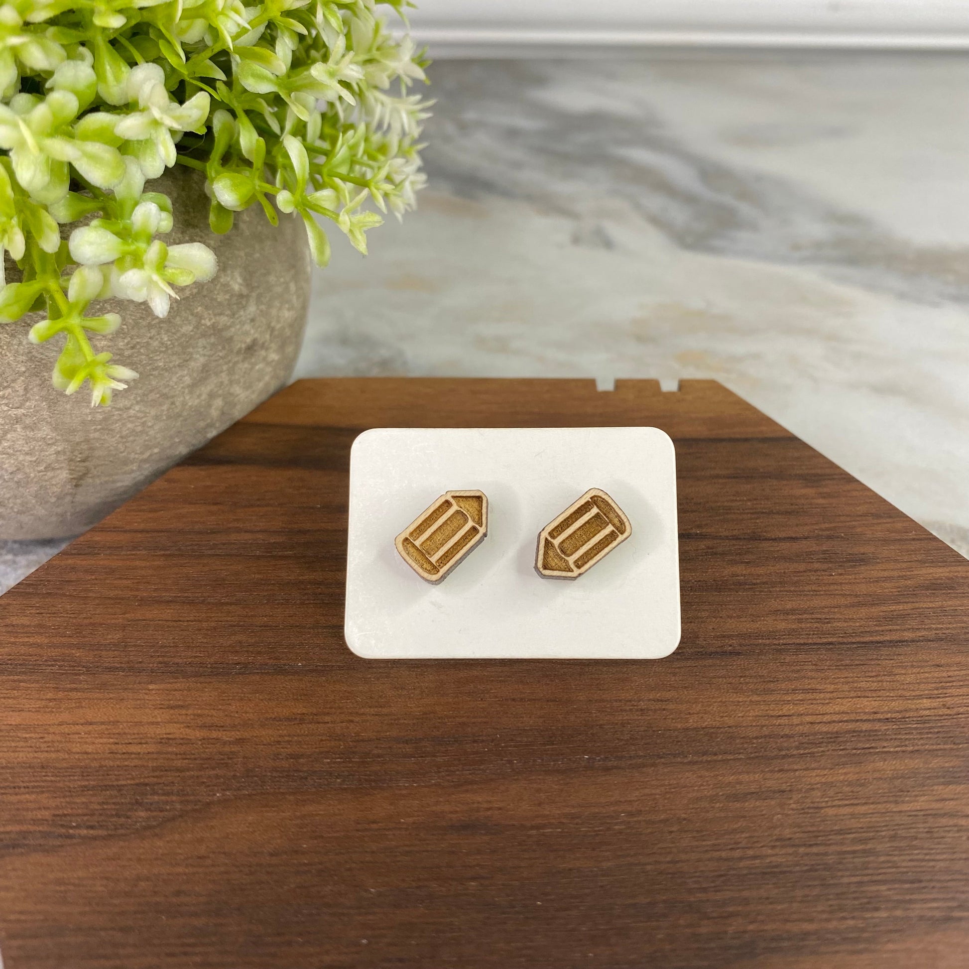 Wooden Stud Earrings - Teacher - Pencil